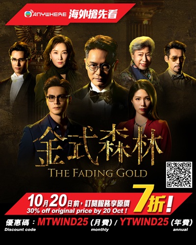另外,凡于10月20日或之前,以月费或年费订阅 TVB Anywhere,登入TVB Anywhere 网站,输入月费计划优惠码MTWIND25,或年费计划优惠码YTWIND25,可获得原价30%优惠!