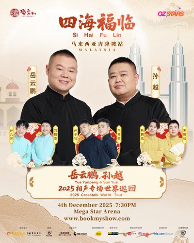 德云社最受欢迎的黄金拍档——岳云鹏与孙越,将于12月4日(星期四)首次登陆马来西亚,在 Mega Star Arena 举行《四海福临2025相声专场》世界巡演吉隆坡站。