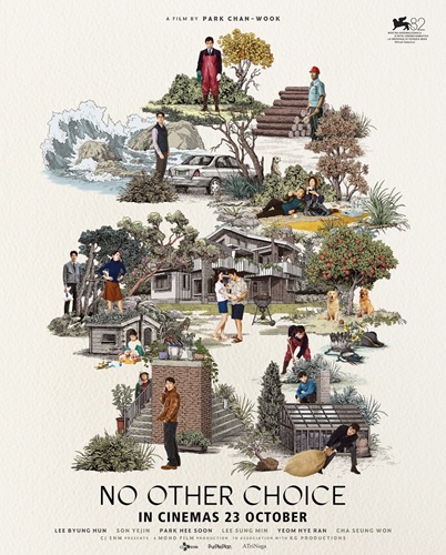 在看电影《No Other Choice》(《征人启弑》)之前,就对海报设计充满好奇。那种带点卡通式的猎奇风格,让人一眼难忘,却又猜不透电影真正要表达什么。可当看到主演阵容有李秉宪、孙艺珍、朴熹洵、李星民、廉惠兰、车胜元、柳演锡时,已经决定无论类型如何,这部电影都非看不可。
