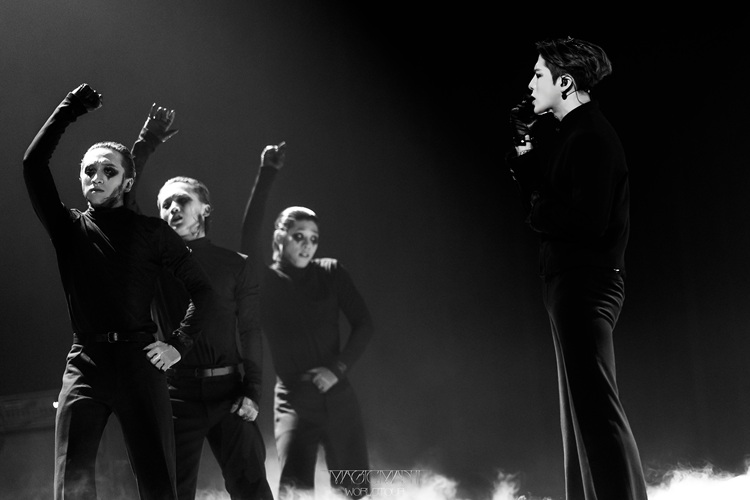 整场演唱会中,王嘉尔带来了多首热门与新曲,包括《GBAD》、《BUCK》、《Access》等,展现强烈的舞台感染力。虽然碍于马来西亚国情,无法如其他巡演场次般进行贴身热舞互动,但他依然贴心宠粉,邀请四位女粉丝上台坐在舞台前观赏他的性感舞蹈,时而跪地挑逗、时而靠近撩人,全场尖叫声不绝。