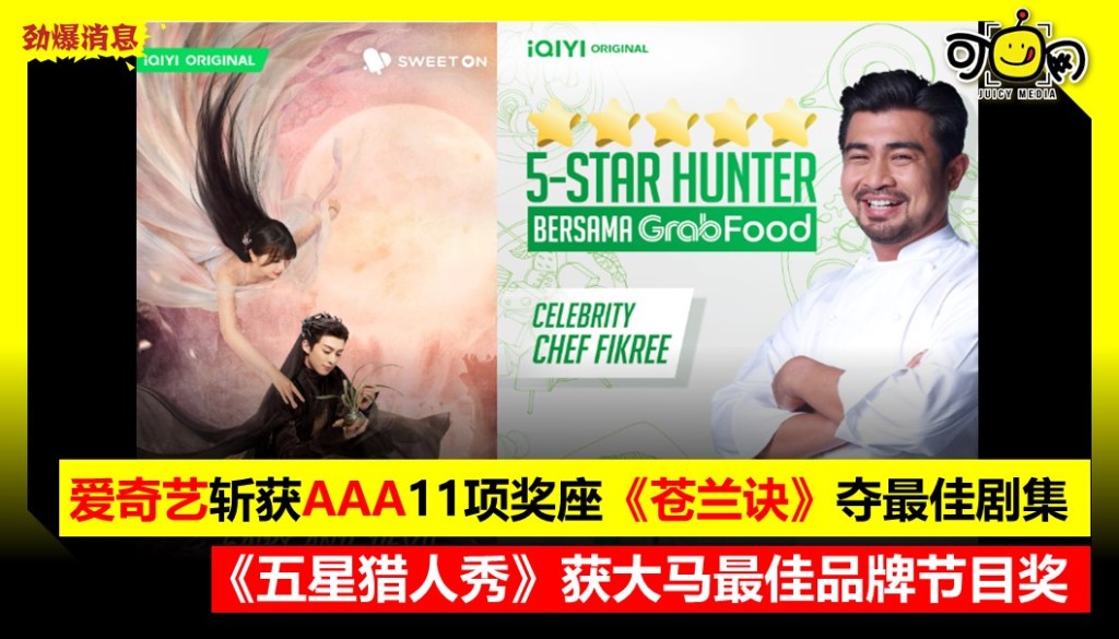 【2023亚洲影艺创意大奖】爱奇艺斩获11项奖座,《苍兰诀》夺最佳剧集,《GrabFood五星猎人秀》获大马最佳品牌节目奖!