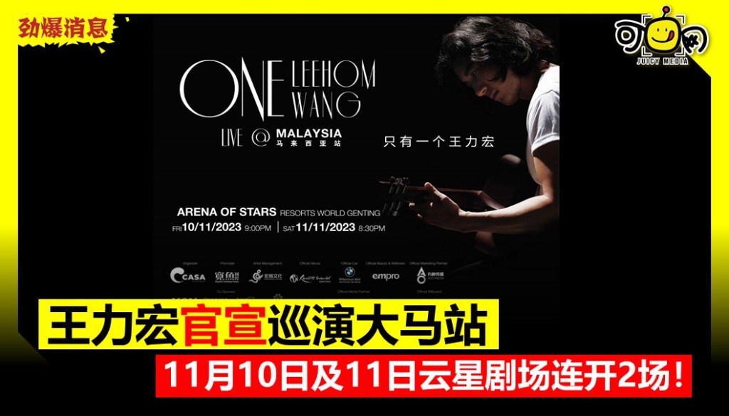 王力宏官宣巡演大马站,11月10日及11日云星剧场连开2场!