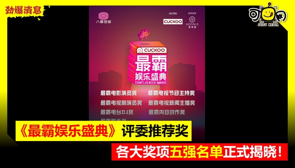 《最霸娱乐盛典》评委推荐奖,五强名单出炉!