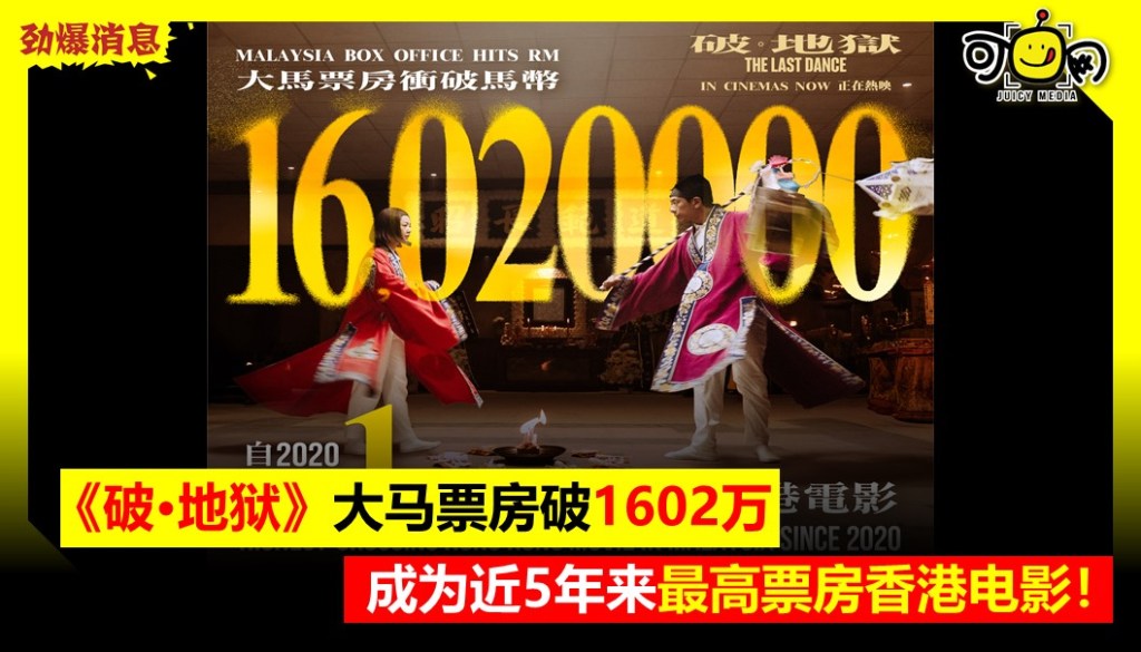 《破·地狱》大马票房破1602万,成为近5年来最高票房香港电影!