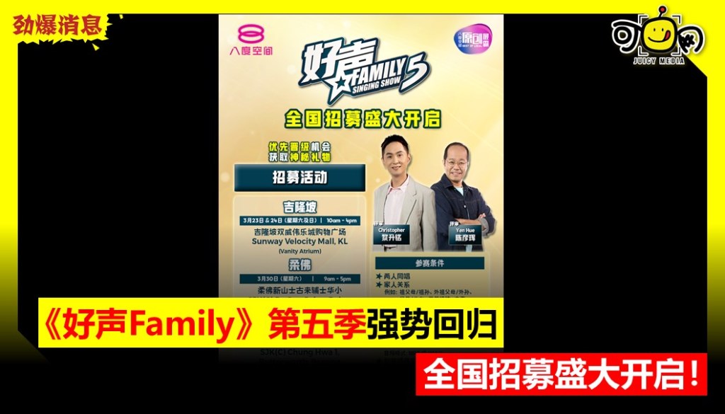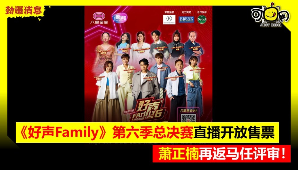 《好声Family》第六季总决赛直播开放售票,萧正楠再返马任评审!