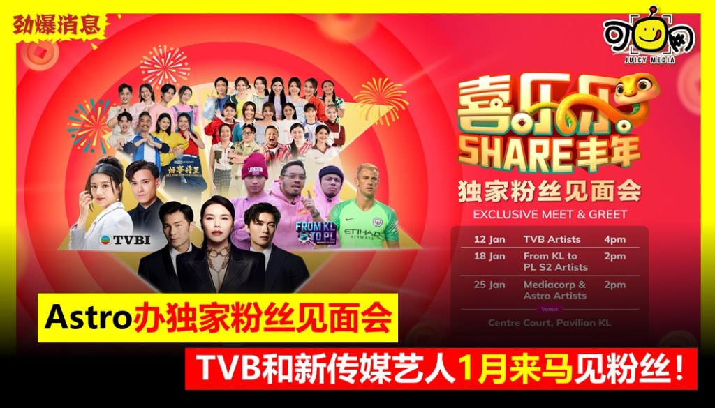 Astro办独家粉丝见面会,TVB和新传媒艺人1月来马见粉丝!