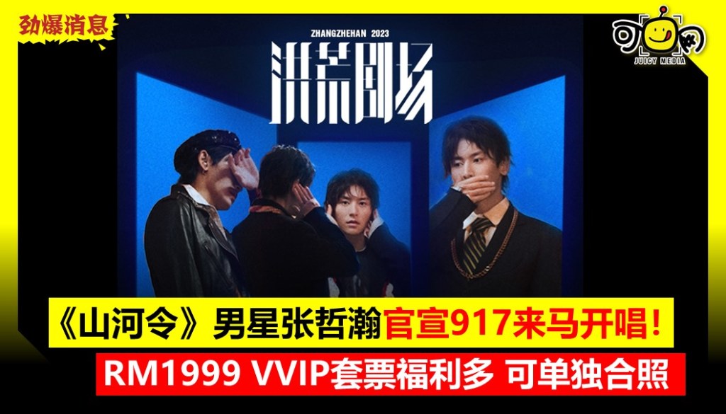 《山河令》男星张哲瀚官宣917来马开唱!