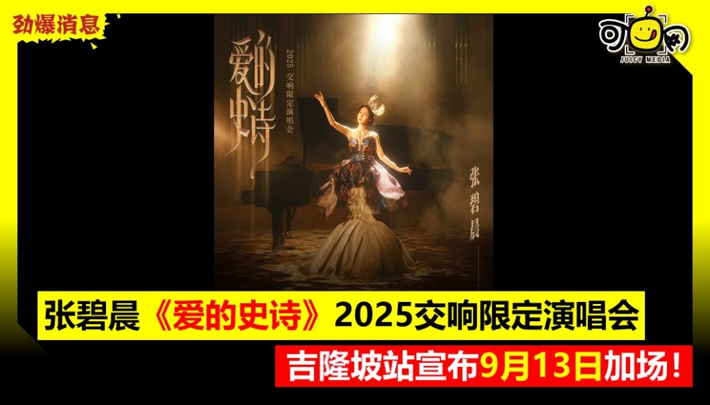 张碧晨《爱的史诗》2025 交响限定演唱会,吉隆坡站宣布9 月 13 日加场!
