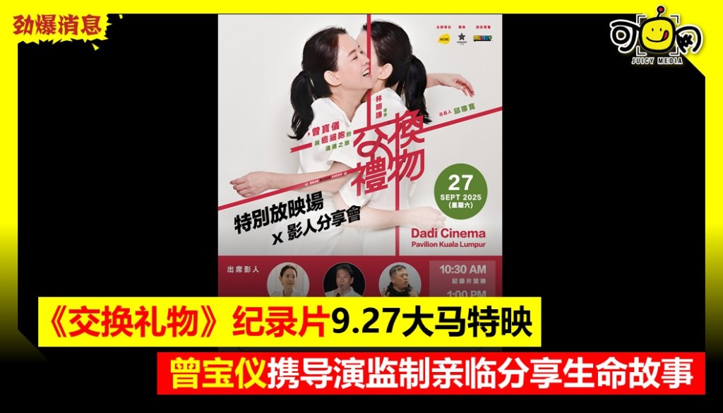 《交换礼物》纪录片9.27大马特映,曾宝仪携导演监制亲临分享生命故事(售罄加场!)