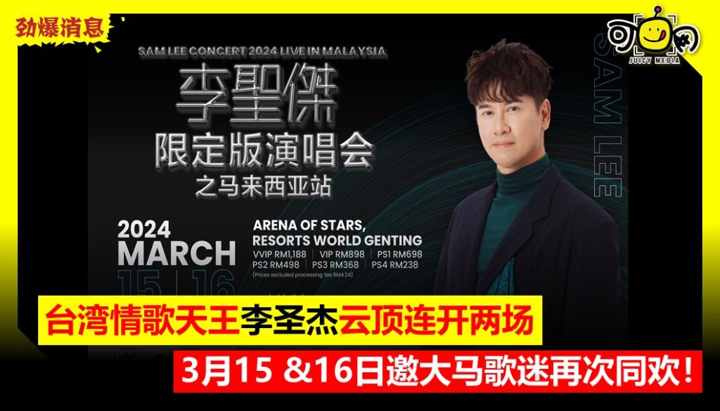 台湾情歌天王李圣杰云顶连开两场,3月15&16日邀大马歌迷再次同欢!