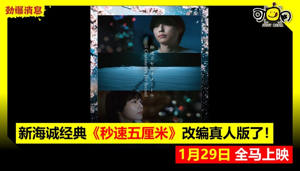 新海诚经典《秒速五厘米》改编真人版了!1月29日 全马上映