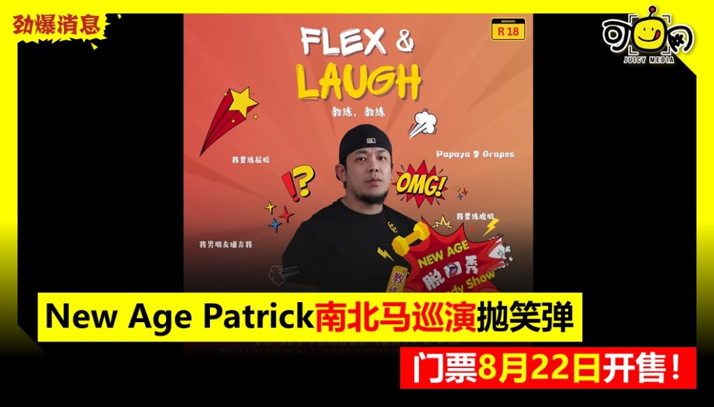 New Age Patrick南北马巡演抛笑弹,门票8月22日开售!(柔佛场调整至10月18日)