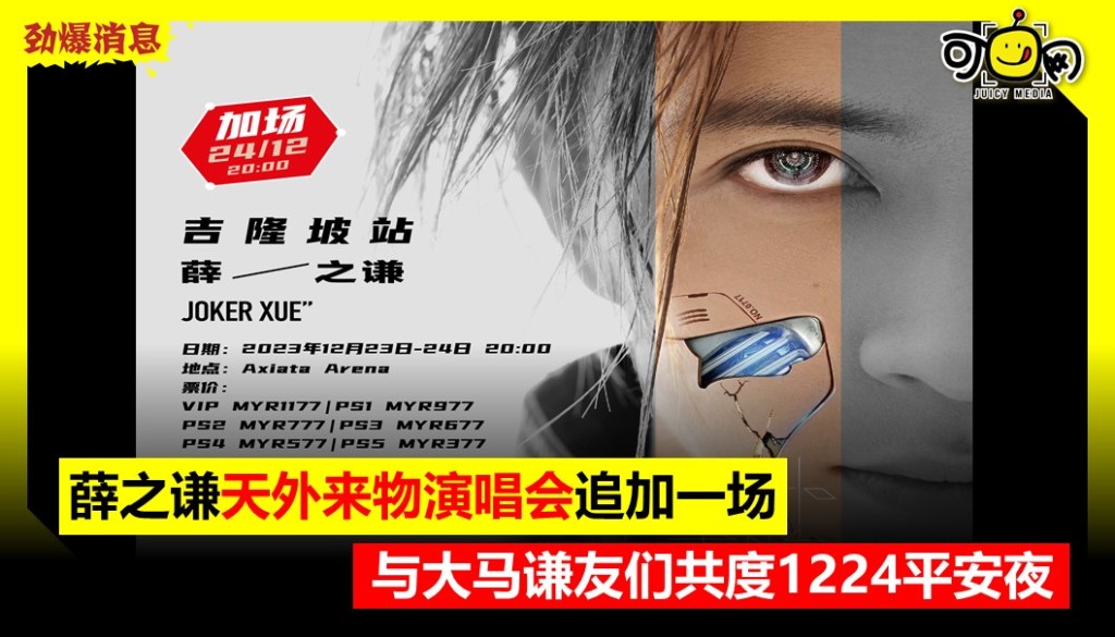 薛之谦官宣吉隆坡场演唱会,12月23日Axiata Arena开唱!