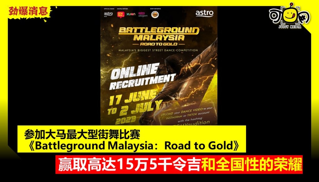 参加大马最大型街舞比赛《Battleground Malaysia:Road to Gold》,赢取高达15万5千令吉现金奖和全国性的荣耀