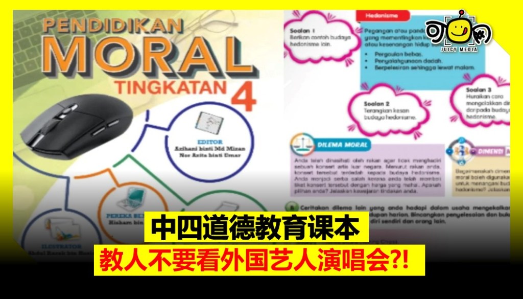 大马中四道德教育课本,因为这个原因教人不要看外国艺人演唱会?!