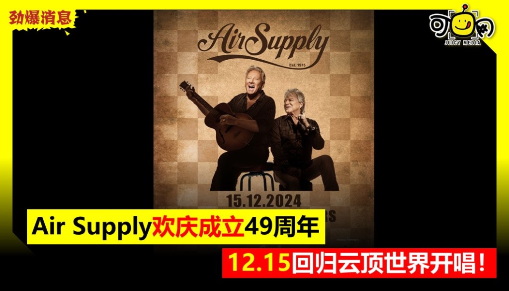 Air Supply欢庆成立49周年,12.15回归云顶世界开唱!