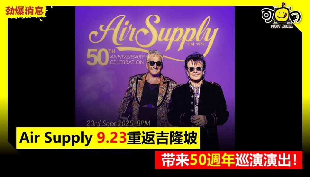 Air Supply 9.23重返吉隆坡,带来50週年巡演演出!