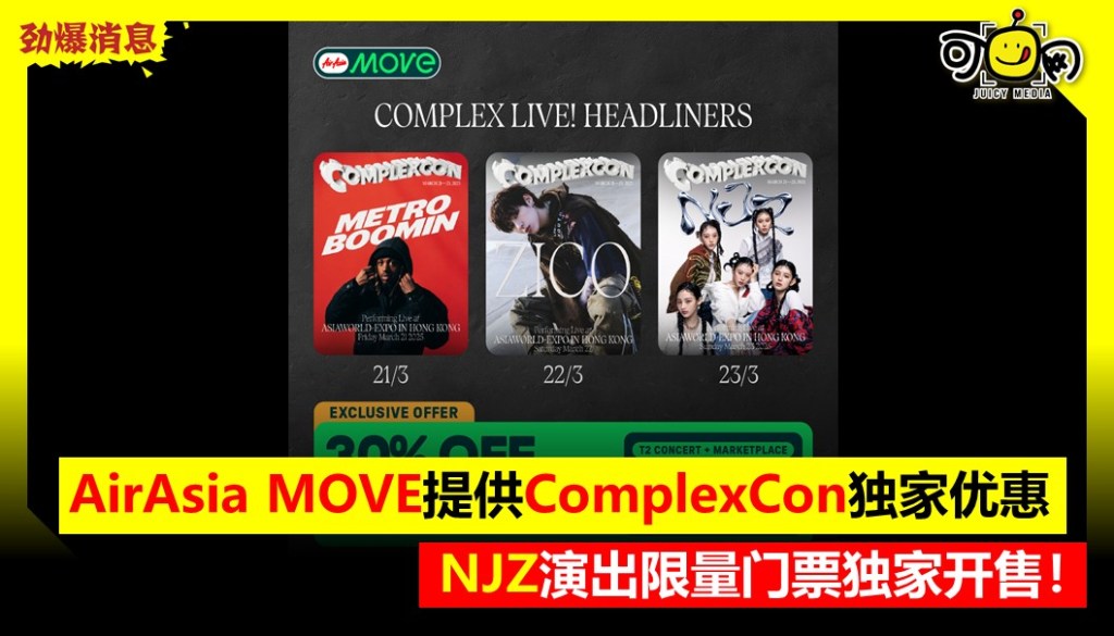 AirAsia MOVE提供 ComplexCon香港独家优惠,NJZ演出限量门票独家开售