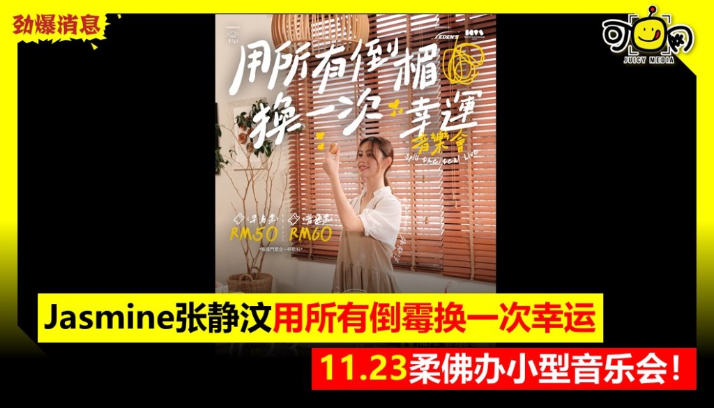 Jasmine张静汶用所有倒霉换一次幸运, 11.23柔佛办小型音乐会!