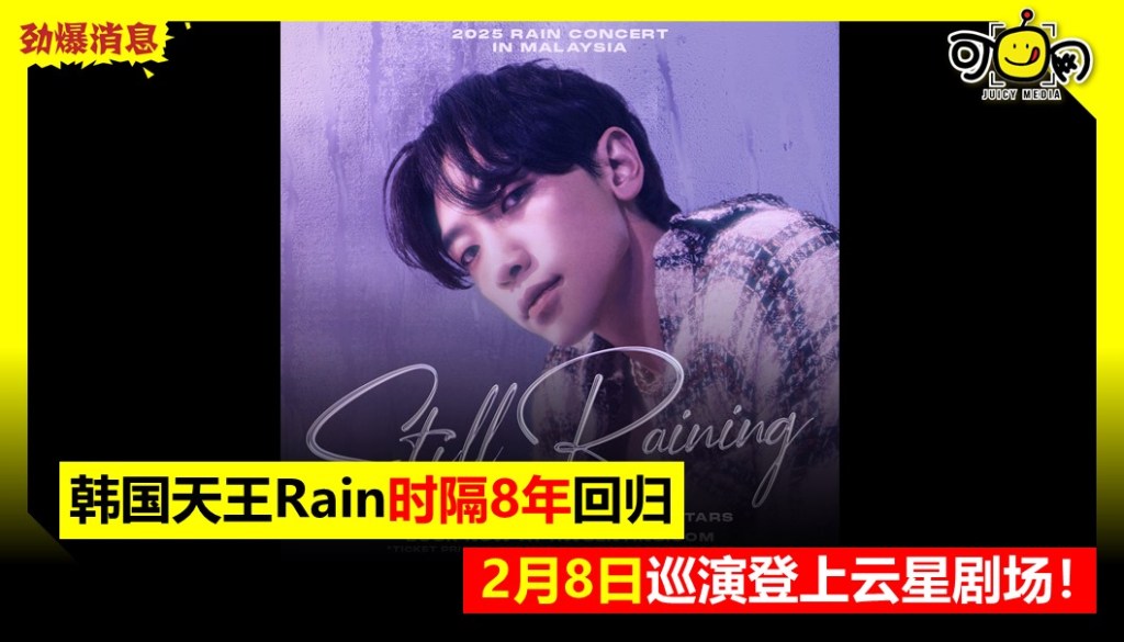 韩国天王Rain时隔8年回归,2月8日巡演登上云星剧场!