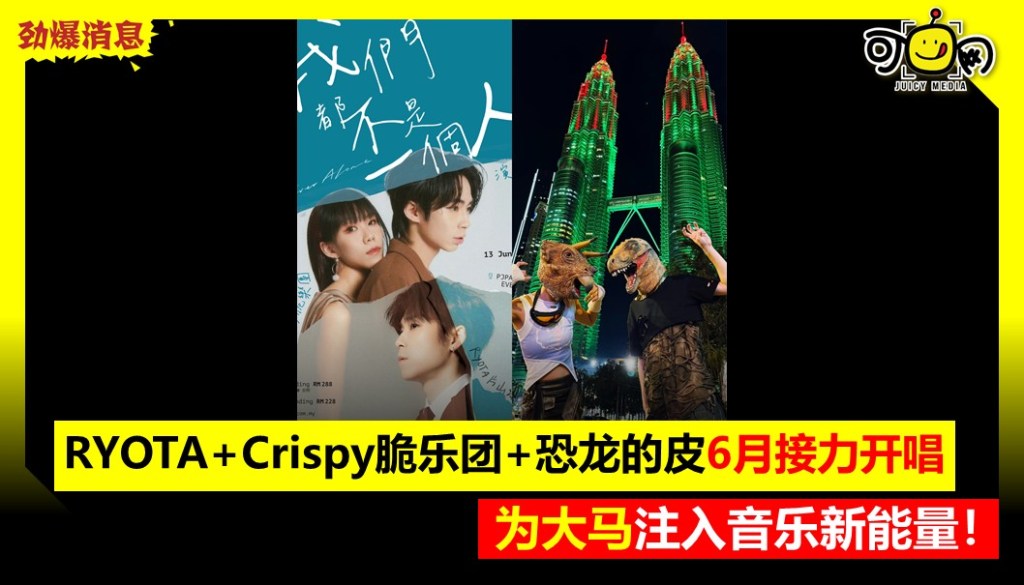 RYOTA片山凉太 、Crispy脆乐团、恐龙的皮6月接力开唱, 为大马注入音乐新能量!