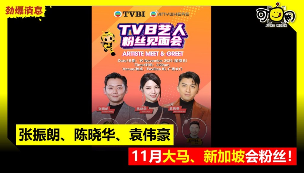 张振朗、陈晓华、袁伟豪11月到大马、新加坡会粉丝!