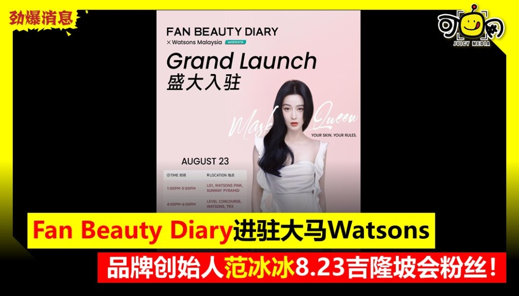 Fan Beauty Diary进驻大马Watsons,品牌创始人范冰冰8.23吉隆坡会粉丝!