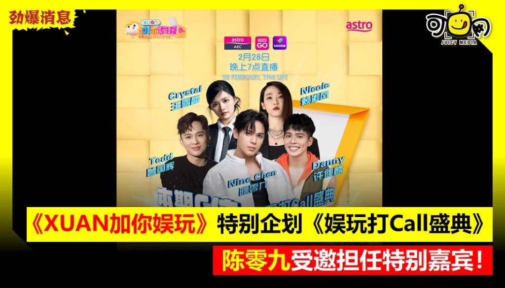 《XUAN加你娱玩》特别企划《娱玩打Call盛典》,陈零九受邀担任特别嘉宾!